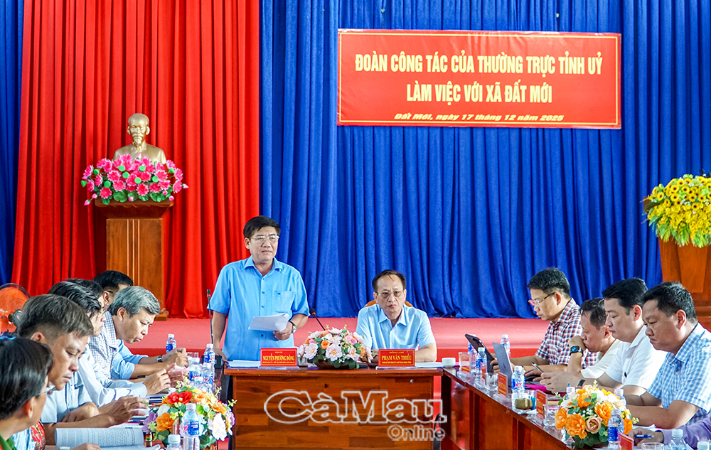 Làm việc với lãnh đạo xã Đất Mới, đồng chí Phạm Văn Thiều, Phó Bí thư Tỉnh uỷ, Chủ tịch HĐND tỉnh Cà Mau, đề nghị địa phương phát huy cao độ sức mạnh đoàn kết, thống nhất trong Đảng bộ, sự đồng thuận của Nhân dân, quyết tâm thực hiện thắng lợi Nghị quyết Đại hội của tỉnh và của địa phương nhiệm kỳ mới, tạo nền tảng vững chắc để xã Đất Mới phát triển bứt phá, toàn diện và bền vững.