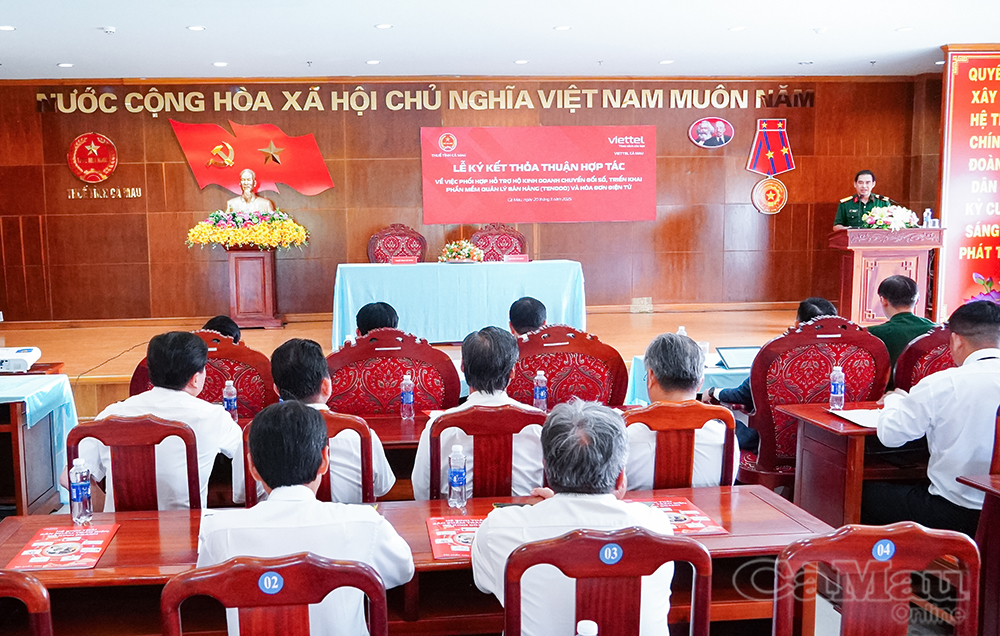 Thực hiện chủ trương của Bộ Tài chính về xóa bỏ thuế khoán, chuyển toàn bộ hộ kinh doanh sang kê khai từ ngày 1/1/2026, chiều 20/11, Thuế tỉnh Cà Mau phối hợp với Viettel Cà Mau tổ chức Lễ ký kết thỏa thuận hợp tác, triển khai chiến dịch “60 ngày cao điểm hỗ trợ hộ kinh doanh chuyển đổi từ thuế khoán sang kê khai”.