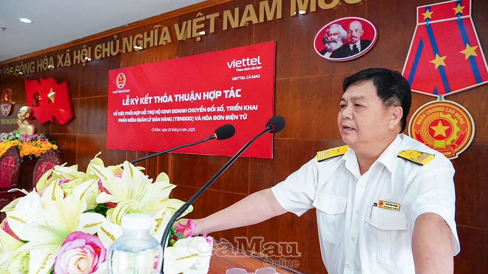 Phát biểu tại lễ ký kết, ông Châu Vĩnh Thuận, Phó Trưởng Thuế tỉnh Cà Mau, nhấn mạnh yêu cầu hai bên phải đồng hành, chia sẻ trách nhiệm để tạo thuận lợi nhất cho hộ kinh doanh; đặc biệt là việc triển khai hóa đơn điện tử càng sớm càng tốt. Ông tin tưởng sự phối hợp giữa Thuế tỉnh Cà Mau và Viettel Cà Mau sẽ mang đến những giá trị thiết thực, hình thành mô hình mẫu về chuyển đổi số trong lĩnh vực thuế, lan tỏa tinh thần số hóa đến từng doanh nghiệp và từng hộ kinh doanh trên địa bàn.
