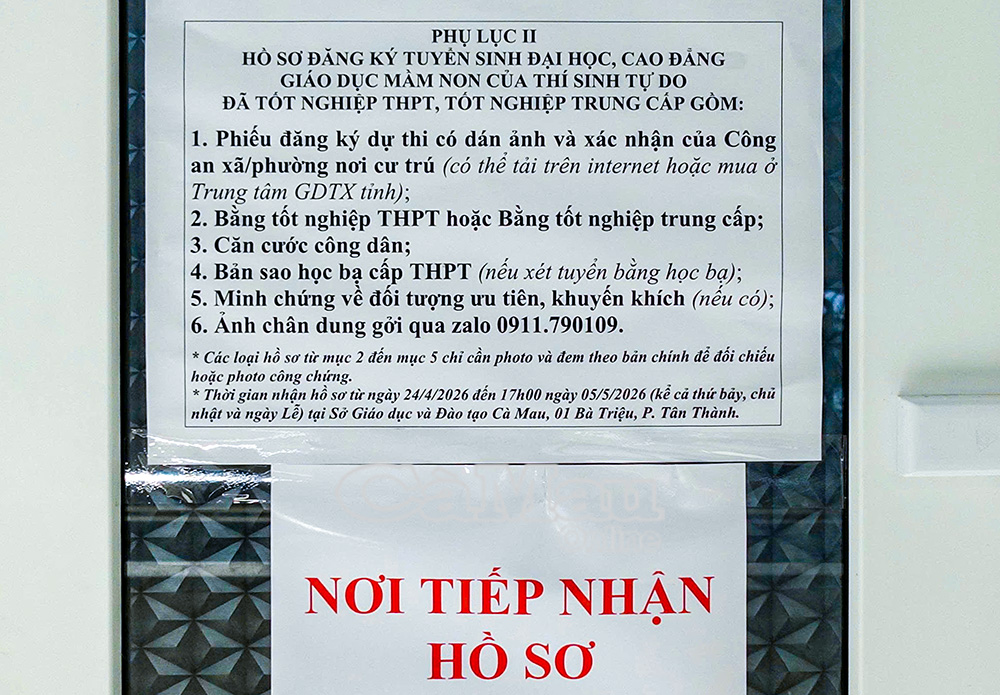 Ông Nguyễn Quốc Tuấn, Giám đốc Trung tâm Giáo dục thường xuyên Cà Mau (phường Tân Thành) cho biết: “Trung tâm đã chuẩn bị đầy đủ cơ sở vật chất, nhân lực để tiếp nhận hồ sơ cũng như hỗ trợ học viên đăng ký dự thi. Chúng tôi đặc biệt chú trọng hướng dẫn kỹ lưỡng cho thí sinh tự do, giúp các em nắm rõ quy trình và hoàn tất thủ tục đúng thời hạn”.