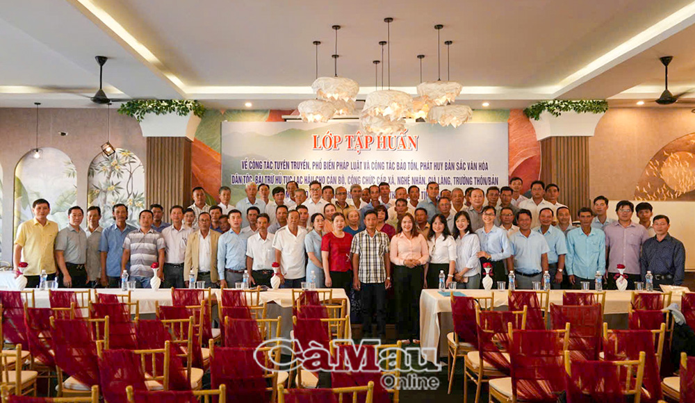 Báo Cà Mau Có hơn 100 cán bộ, công chức cấp xã, nghệ nhân, trưởng ấp và người có uy tín trong đồng bào dân tộc thiểu số trên địa bàn tỉnh Cà Mau tham dự tập huấn.