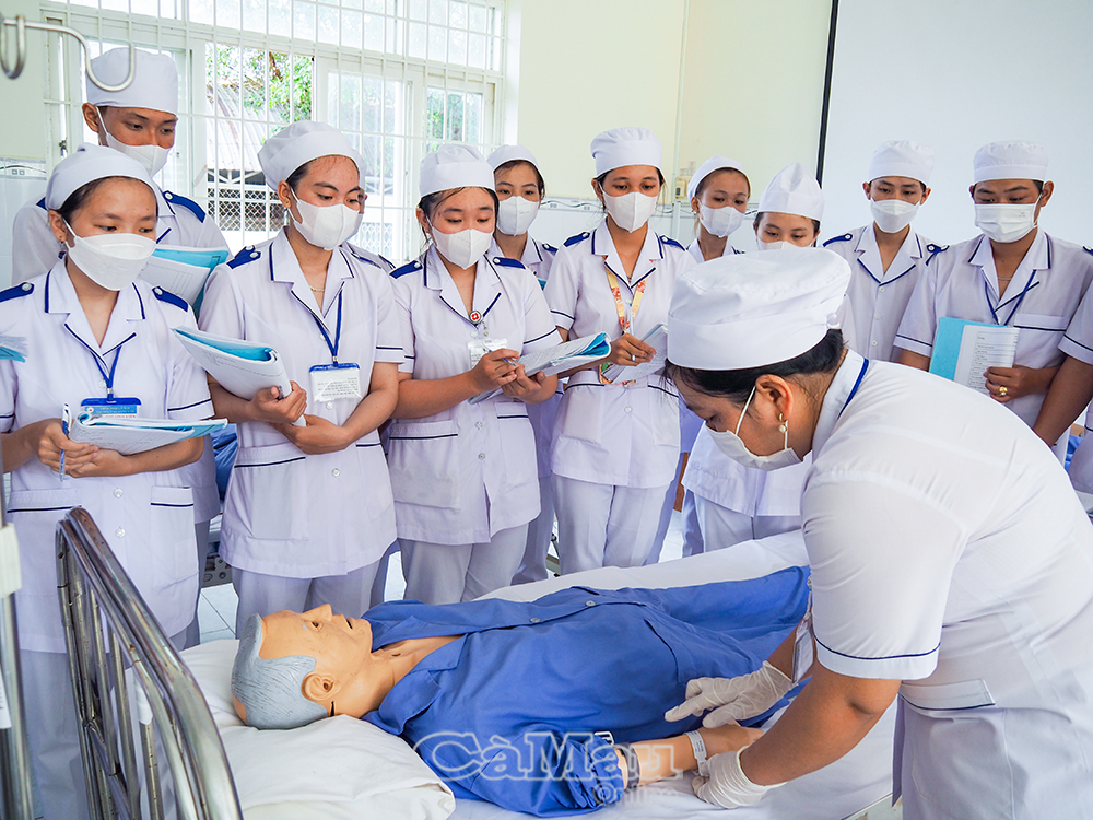 Đây là cơ hội thuận lợi để phát triển nguồn nhân lực y tế tỉnh nhà. (Trong ảnh: Sinh viên Trường Cao đẳng Y tế Cà Mau trong giờ thực hành).