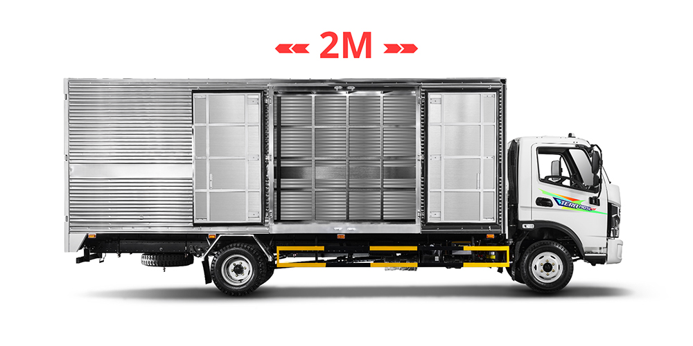 Trong đó, phiên bản thùng lửng và thùng mui bạt sử dụng thiết kế mở 7 bửng, còn phiên bản thùng kín sở hữu cửa hông mở hai bên rộng 2m – duy nhất trong phân khúc, giúp xếp/dỡ hàng hóa linh hoạt từ nhiều hướng.