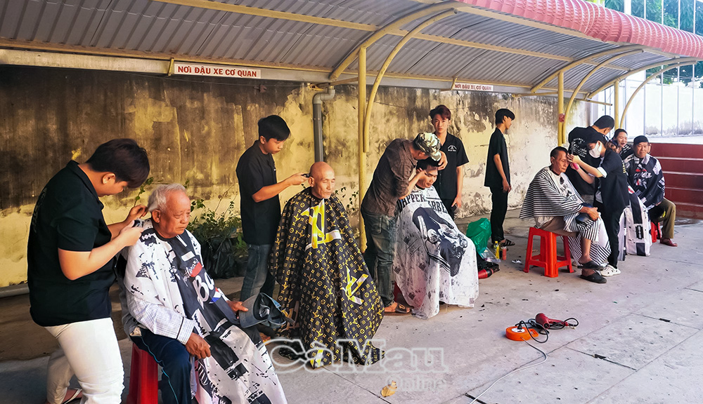 Cắt tóc miễn phí cho người dân.