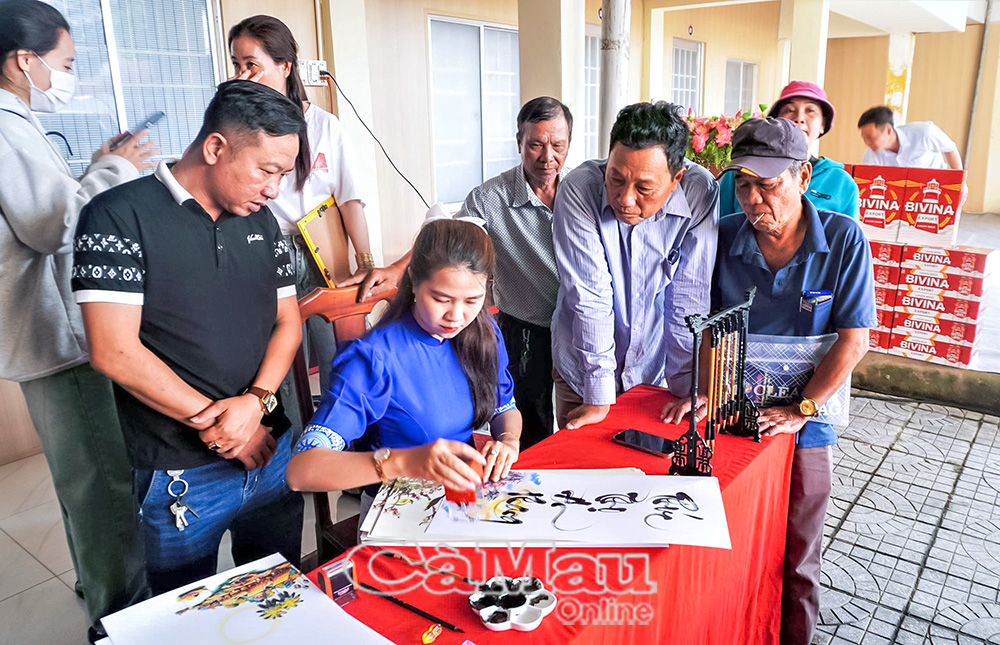 Vẽ tranh thư pháp chúc mừng năm mới 2026 tặng người dân xã Sông Đốc.