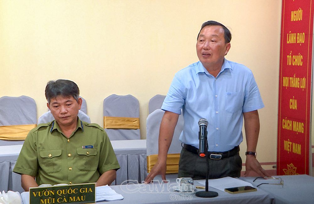 Đồng chí Huỳnh Hữu Trí, Chủ nhiệm Uỷ ban Kiểm tra Tỉnh uỷ, ghi nhận vai trò đặc biệt quan trọng của Vườn Quốc gia Mũi Cà Mau, điểm đến mang giá trị sinh thái, du lịch và nghiên cứu độc đáo, thu hút đông đảo du khách và nhà khoa học. Dù lực lượng chỉ khoảng 90 người nhưng đã quản lý hơn 42 nghìn ha rừng hiệu quả. Đồng chí chia sẻ những khó khăn của cán bộ thường xuyên bám rừng, làm việc xa gia đình và mong muốn toàn đơn vị tiếp tục đoàn kết, nỗ lực hoàn thành tốt nhiệm vụ, đóng góp vào sự phát triển bền vững của địa phương.