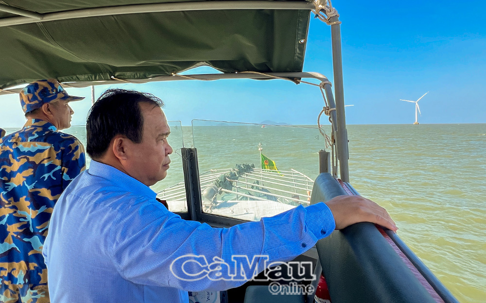 Đồng chí Nguyễn Minh Luân, Phó Chủ tịch UBND tỉnh, khảo sát tình hình an ninh và các dự án được triển khai trên biển.