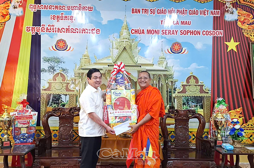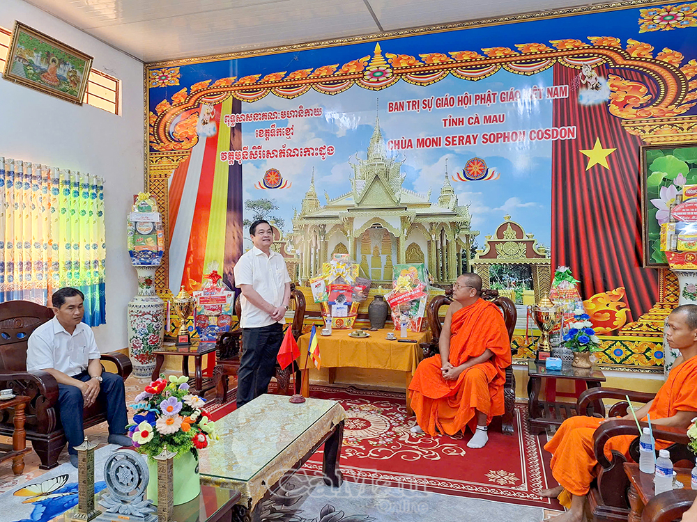 Nhân dịp Tết Chôl Chnăm Thmây năm 2026 của đồng bào dân tộc Khmer, sáng 14/4, đoàn công tác của Tỉnh uỷ - HĐND - UBND - Uỷ ban MTTQ Việt Nam tỉnh Cà Mau do đồng chí Huỳnh Chí Nguyện, Phó Chủ tịch UBND tỉnh, làm trưởng đoàn, đến thăm, chúc Tết tại chùa Cos Don (xã Vĩnh Phước), chùa Dì Quán và chùa Kha Na Rôn (Chệt Sĩa) thuộc xã Ninh Quới.