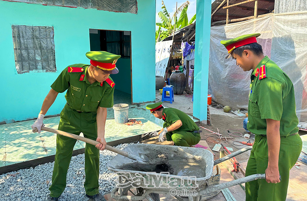 Đoàn viên, thanh niên Công an tỉnh tích cực hỗ trợ xây dựng nhà tình nghĩa tại xã Thới Bình.