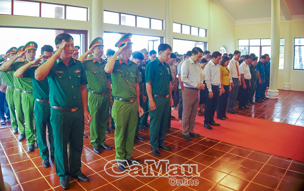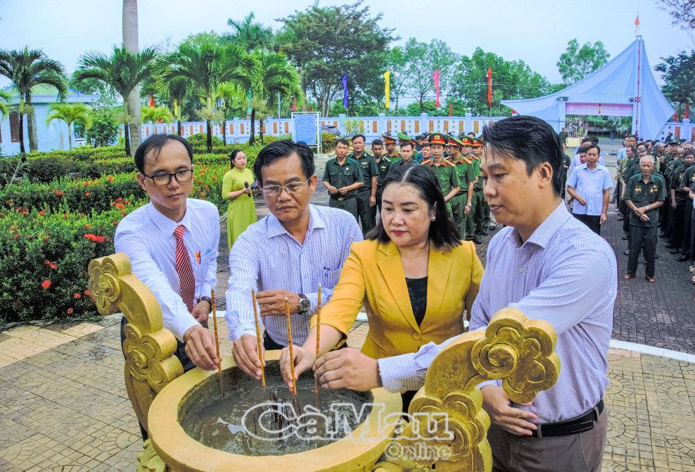 Trước đó, Đảng uỷ - HĐND - UBND - Uỷ ban MTTQ Việt Nam xã Phan Ngọc Hiển đã đến dâng hoa, dâng hương và dành một phút mặc niệm tưởng nhớ các anh hùng liệt sĩ tại Khu di tích Quốc gia đặc biệt - Đường Hồ Chí Minh trên biển.