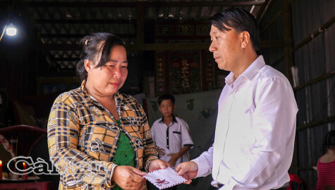 Ông Tăng Thiện Tính, Phó Chủ tịch UBND xã Đất Mũi hỗ trợ 3 triệu đồng để gia đình lo tang sự.