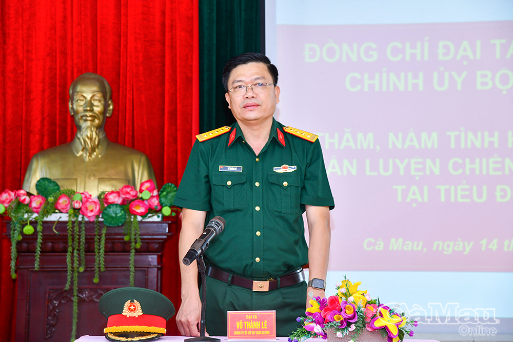 Báo Cà Mau Ngày 14/3, Đoàn công tác Bộ Chỉ huy quân sự (CHQS) tỉnh Cà Mau do Đại tá Võ Thành Lê, Chính uỷ Bộ CHQS tỉnh, làm trưởng đoàn đến thăm, động viên chiến sĩ mới đang huấn luyện tại Tiểu đoàn 1, Trung đoàn 894.