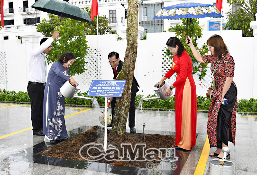 Hưởng ứng lời dạy của Bác Hồ: “Vì lợi ích mười năm trồng cây, vì lợi ích trăm năm trồng người”, ngay sau lễ dâng hương, các đại biểu trung ương và địa phương đã trồng cây lưu niệm tại khuôn viên Trung tâm Hội nghị tỉnh. Hoạt động này không chỉ mang ý nghĩa chào mừng sự kiện chính trị trọng đại của tỉnh, mà còn gửi gắm thông điệp về phát triển xanh, bền vững, bảo vệ môi trường, thích ứng với biến đổi khí hậu, vun trồng cho tương lai một Cà Mau xanh ngát, vững vàng vươn lên phía trước.