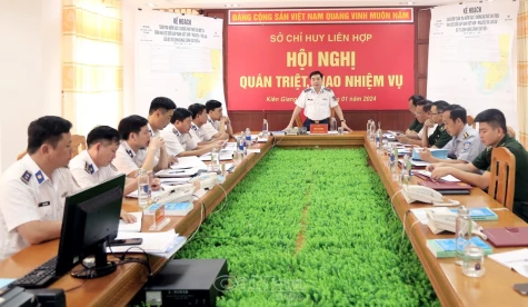 Đại tá Đào Bá Việt, Phó Tham mưu trưởng Cảnh sát biển - Chỉ huy trưởng Sở Chỉ huy liên hợp quán triệt, giao nhiệm vụ cho các lực lượng.