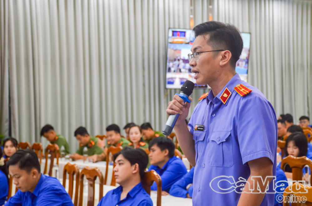 Bí thư Đoàn cơ sở Viện Kiểm sát nhân dân tỉnh Ngô Minh Quyền nêu ý kiến về cơ chế đặc thù tạo động lực cho cán bộ trẻ.