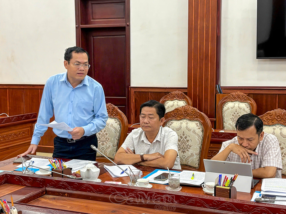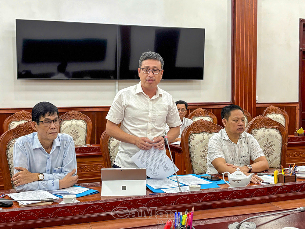 Giám đốc Trung tâm Phát triển quỹ đất tỉnh Cà Mau Tăng Vũ Em báo cáo tình hình giải phóng mặt bằng các dự án.