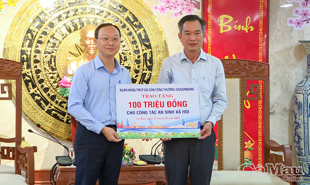 Ngân hàng TMCP Sài Gòn Công Thương (Saigonbank) trao hỗ trợ 100 triệu đồng cho công tác an sinh xã hội của tỉnh Cà Mau.