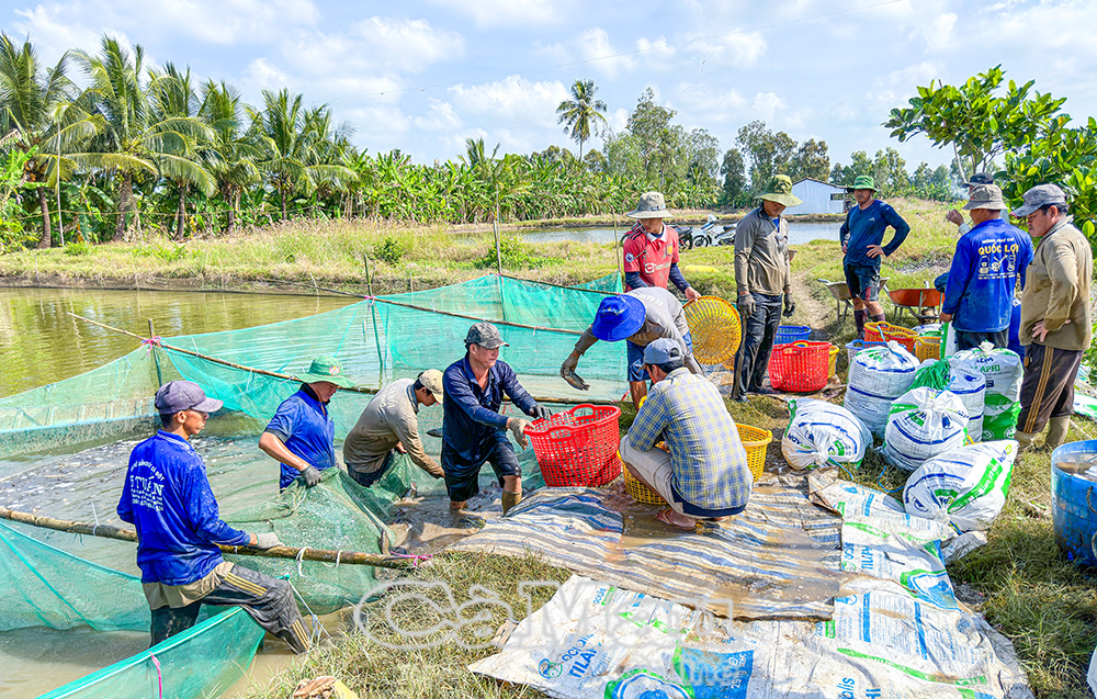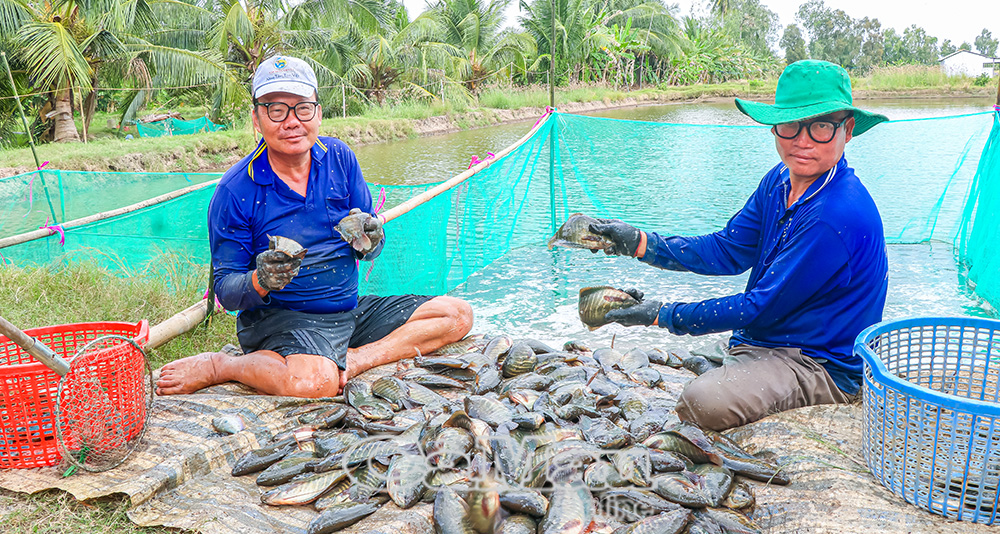 Anh Nam cho biết: “Trước đây, những người nuôi cá bổi mần vần công cho nhau trên chục nhà. Riết mình càng lớn tuổi, vần công hết nổi, có những nhà đơn chiếc, nên 4 năm nay có nhóm chuyên thu hoạch cá bổi thuê, tiện lợi lắm. Vụ cá bổi năm nay, mỗi ao khoảng 20 tấn cá, mỗi tấn thu hoạch trả công 1 triệu đồng/người. Họ làm hết từ khâu bơm tát nước rồi kéo lưới, lên cá, lựa cá, cân cá giao cho thương lái luôn, mình chỉ theo quan sát, ghi chép nên khoẻ lắm. Anh em nhóm làm nhanh lẹ, kỹ càng, chuyên nghiệp nên mình cũng yên tâm”.
