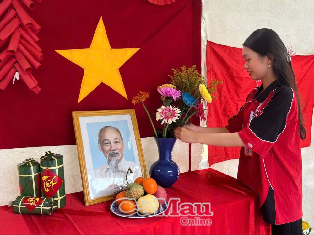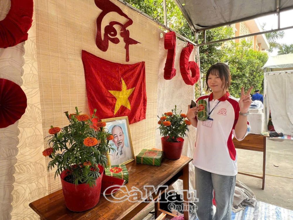 Trong không khí rộn ràng, tươi vui của Hội trại Xuân tại Trường THCS - THPT Lý Văn Lâm, phường Lý Văn Lâm có một không gian đặc biệt luôn được gìn giữ sự trang nghiêm và thành kính - khu vực trang trí bàn thờ Chủ tịch Hồ Chí Minh.
