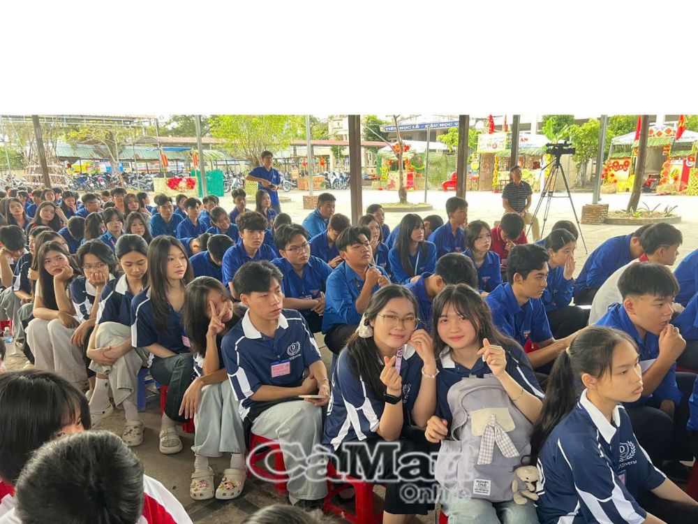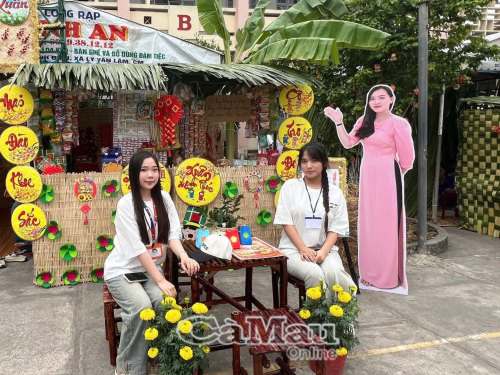 Không khí rộn ràng tại khu vực hội trại Xuân Trường THCS - THPT Lý Văn Lâm trong ngày khai mạc.