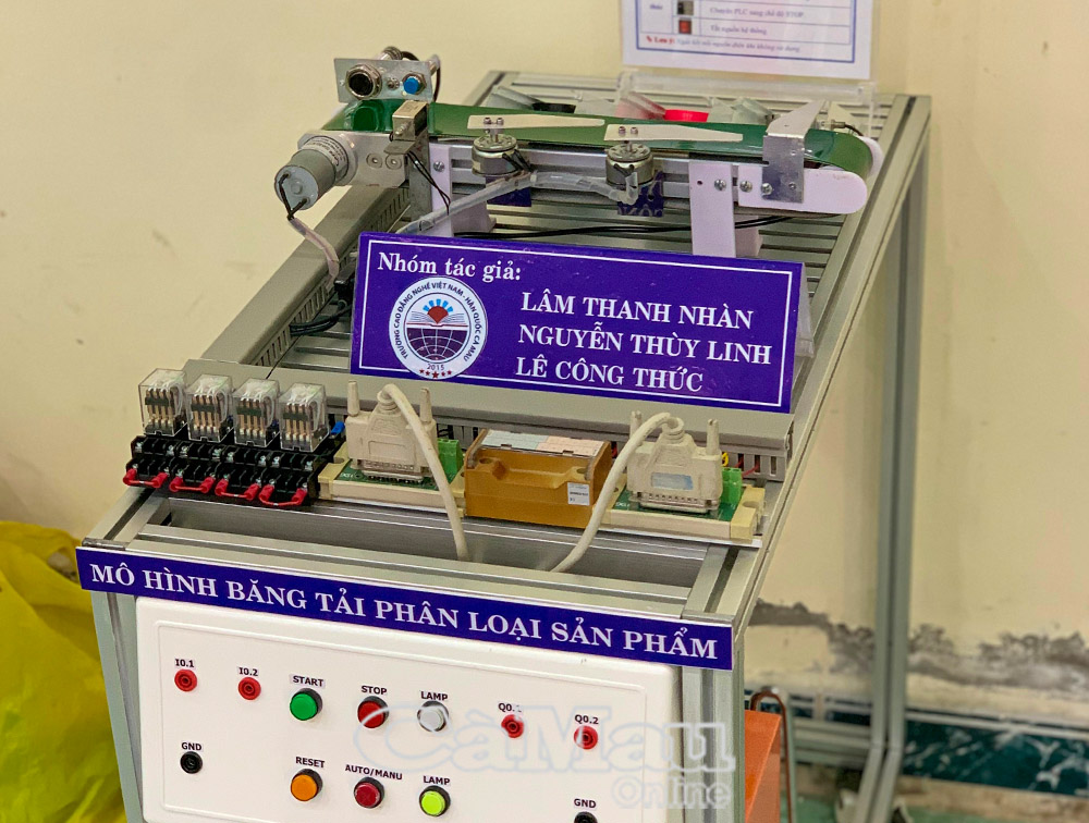 Một mô hình băng tải phân loại sản phẩm tham gia Hội thi Thiết bị đào tạo tự làm năm 2025.