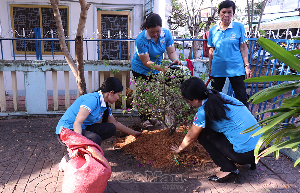 Tại Di tích lịch sử Bàu Thúi và Tượng đài ghi danh 10 Anh hùng liệt sĩ Khởi nghĩa Hòn Khoai, hội viên phụ nữ phường đã tham gia vệ sinh môi trường, trồng cây xanh và hoa kiểng, tạo cảnh quan sạch đẹp.