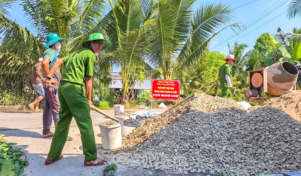 Nhằm giúp người dân an tâm đón tết Nguyên đán Bính Ngọ 2026, Công an xã Vĩnh Thanh nhanh chóng triển khai công trình. Sau khi khảo sát thực tế, đơn vị huy động mọi nguồn lực theo dự toán kinh phí, tiến hành tu sửa đoạn đường dài hơn 25 m, mở rộng thêm 1,5 m, với tổng kinh phí trên 17 triệu đồng. Ðặc biệt, lực lượng thi công chủ yếu là “nguồn lực sẵn có”, gồm cán bộ, chiến sĩ công an xã và người dân địa phương. Người góp công lao động, người hỗ trợ thức ăn, nước uống, điện chiếu sáng, cho mượn vật dụng... để lực lượng thi công làm việc cả buổi tối, sớm hoàn thành công trình.