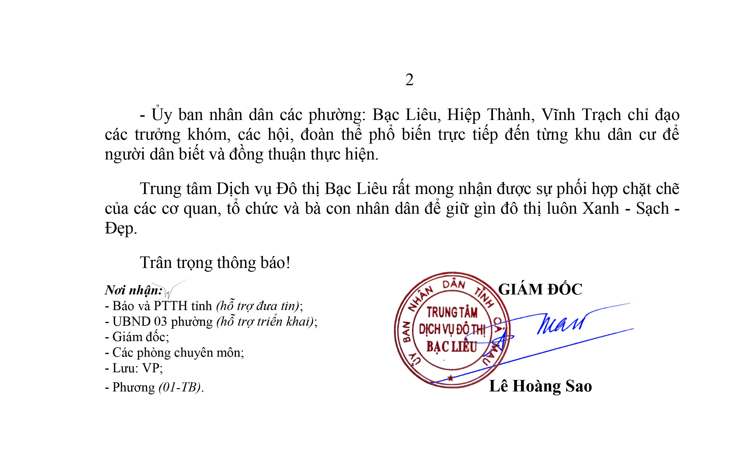Nhằm phối hợp thực hiện tốt công tác vệ sinh môi trường, duy trì mỹ quan đô thị và tạo điều kiện cho lực lượng công nhân vệ sinh nghỉ Tết Nguyên đán Bính Ngọ, năm 2026. Trung tâm Dịch vụ Đô thị Bạc Liêu thông báo đến các cơ quan, đơn vị, trường học, bệnh viện, các cơ sở sản xuất - kinh doanh và hộ gia đình, cá nhân trên địa bàn các phường Bạc Liêu, Hiệp Thành, Vĩnh Trạch.