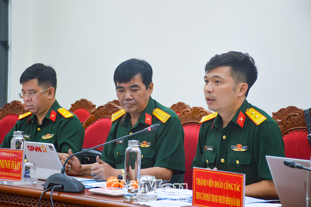 Trung tá Nguyễn Hoài Nam, Phó Trưởng ban Đại diện Trung tâm Phát thanh - Truyền hình Quân đội tại đồng bằng sông Cửu Long, trình bày kịch bản, quy mô và các nội dung liên quan của chương trình.