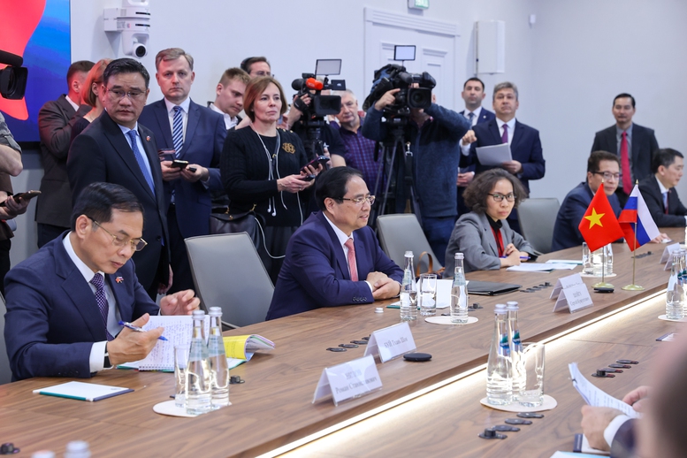 Trong không khí tin cậy chính trị cao, Thủ tướng Chính phủ Phạm Minh Chính và Thư ký Hội đồng An ninh Liên bang Nga Sergey Shoigu đã cùng điểm lại những nét nổi bật trong hợp tác song phương thời gian qua; cùng ghi nhận những kết quả đã đạt được, trao đổi, đề xuất nhiều biện pháp nhằm tháo gỡ những khó khăn còn tồn tại, thúc đẩy hợp tác trên các lĩnh vực quốc phòng - an ninh, kinh tế - thương mại - đầu tư, năng lượng - dầu khí, giao thông vận tải, nhân văn, giao lưu nhân dân, du lịch…