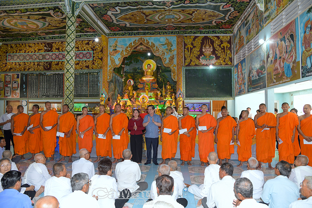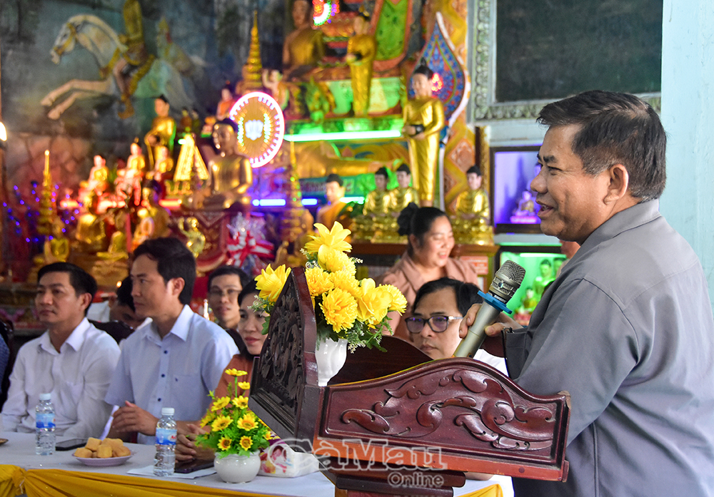 Thay mặt Hội Đoàn kết sư sãi yêu nước tỉnh, Hoà thượng Thạch Hà, Trưởng ban Trị sự Giáo hội Phật giáo Việt Nam tỉnh, Chủ tịch Hội Đoàn kết sư sãi yêu nước tỉnh Cà Mau, Trụ trì chùa Monivongsa Bopharam (phường An Xuyên), bày tỏ sự trân trọng, cảm ơn những phần quà ý nghĩa được trao tận tay các vị sư và bà con phật tử, thể hiện sự quan tâm của Đảng, Nhà nước đối với đời sống tinh thần của đồng bào Khmer; đồng thời khẳng định sẽ tiếp tục phát huy vai trò, trách nhiệm trong sự nghiệp xây dựng và bảo vệ Tổ quốc trong kỷ nguyên mới.