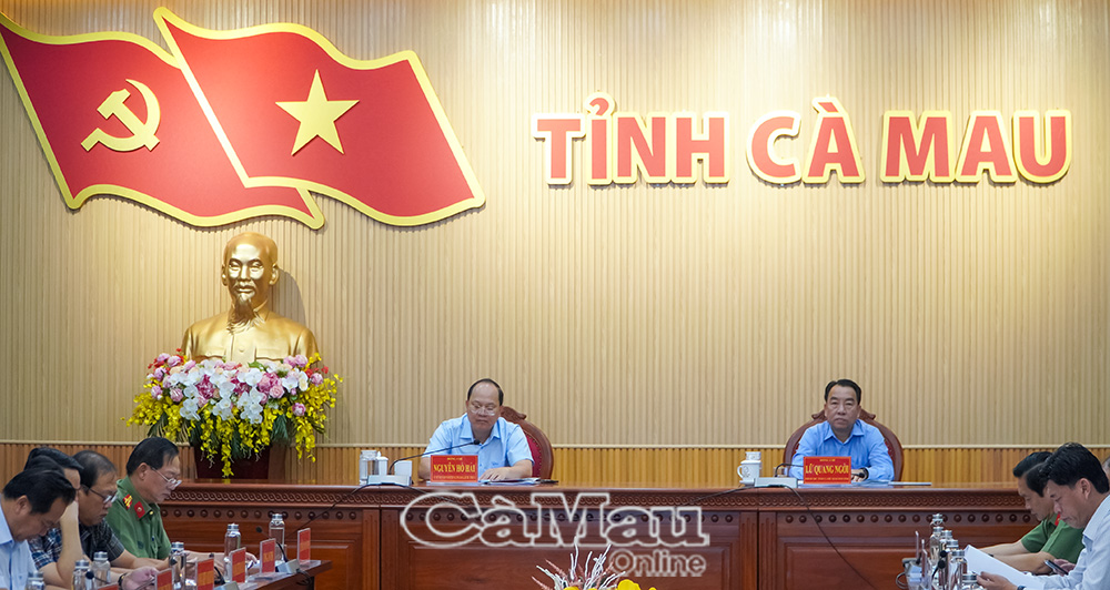 Bí thư Tỉnh uỷ Nguyễn Hồ Hải và Chủ tịch UBND tỉnh Lữ Quang Ngời chủ trì tại điểm cầu tỉnh Cà Mau.