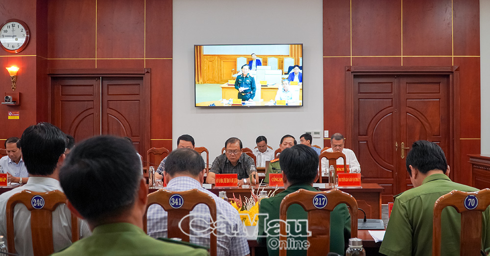 Các đồng chí lãnh đạo tỉnh Cà Mau và đại biểu sở, ban, ngành tỉnh dự họp trực tuyến.