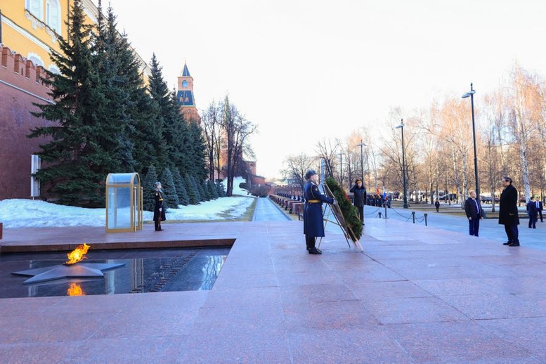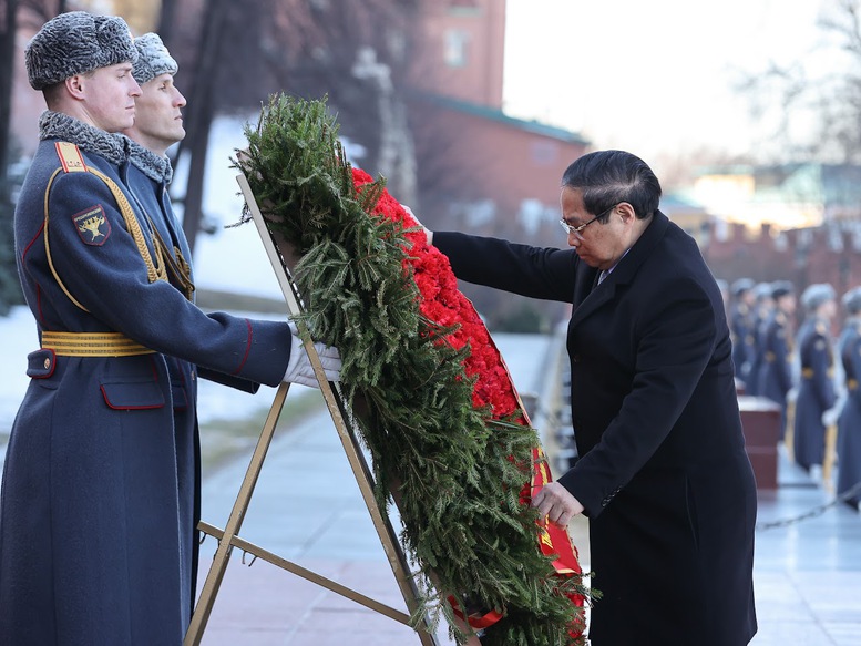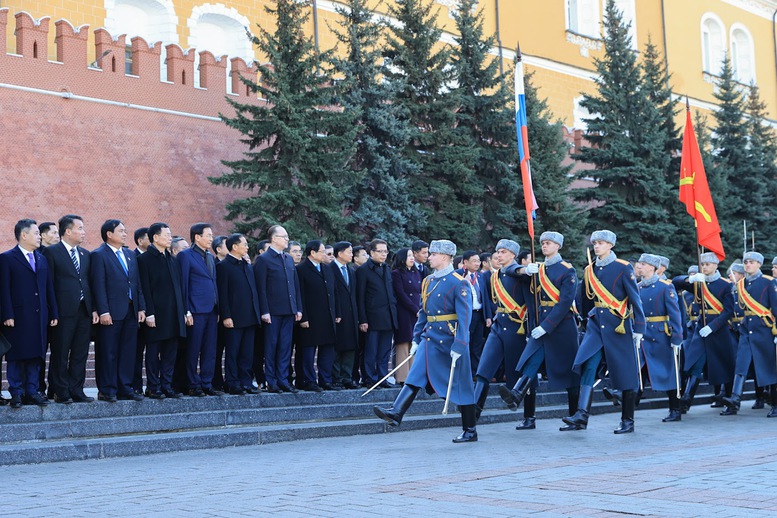 Trong không khí trang nghiêm xúc động, Thủ tướng Phạm Minh Chính cùng đoàn đại biểu cấp cao Việt Nam đã dâng hoa tưởng nhớ Chủ tịch Hồ Chí Minh, lãnh tụ kính yêu của Nhân dân Việt Nam, nhà lãnh đạo lỗi lạc của Đảng Cộng sản Việt Nam và phong trào cộng sản thế giới, Anh hùng giải phóng dân tộc, nhà văn hoá kiệt xuất. Chủ tịch Hồ Chí Minh cũng là người bạn lớn của nhân dân Nga - Người đã đặt nền móng cho mối quan hệ hữu nghị truyền thống giữa hai nước Việt Nam và Liên bang Nga.