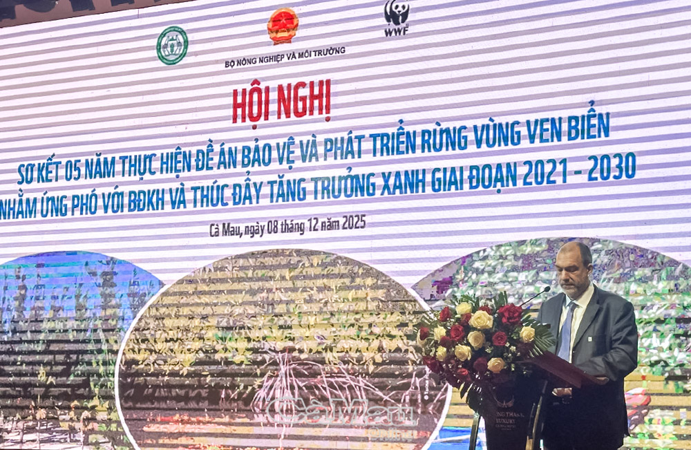 Ông Thibault Ledecq, Giám đốc Bảo tồn WWF-Việt Nam, cam kết sẽ hỗ trợ các tỉnh trong giai đoạn 2025-2030, đặc biệt là Cà Mau, nhằm đưa mục tiêu khôi phục và bảo tồn rừng ven biển trở thành một trong những trụ cột quan trọng của WWF. Ông cũng khẳng định sẵn sàng đồng hành cùng Chính phủ trong các hoạt động bảo tồn và phát triển rừng bền vững; huy động tài chính khí hậu xanh; thúc đẩy thị trường các-bon rừng trong tương lai.