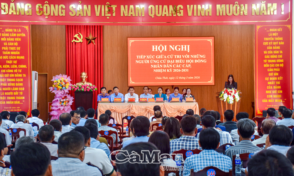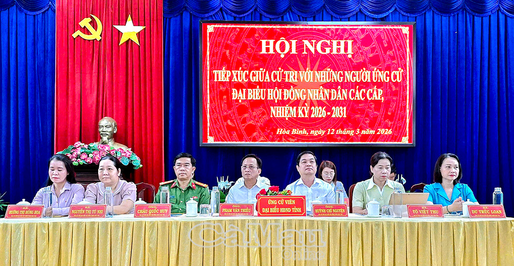 Báo Cà Mau Ngày 12/3, các đoàn ứng cử viên đại biểu Quốc hội khoá XVI và đại biểu HĐND các cấp nhiệm kỳ 2026-2031 tiếp tục tiếp xúc cử tri tại nhiều địa phương trong tỉnh, trình bày chương trình hành động và lắng nghe ý kiến, nguyện vọng của Nhân dân trước ngày bầu cử.