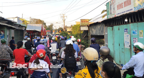 Khoảng 6 giờ 20 phút sáng 31/3/2021, trên tuyến Hương lộ 6 đoạn qua địa bàn khóm 10 (Phường 1, TP. Bạc Liêu) xảy ra ùn tắc giao thông cục bộ. Rất đông người và xe xếp hàng dài hơn 1km và không thể di chuyển qua khu vực khi bị một rạp cưới dựng lấn ra phần đường dành cho phương tiện lưu thông.