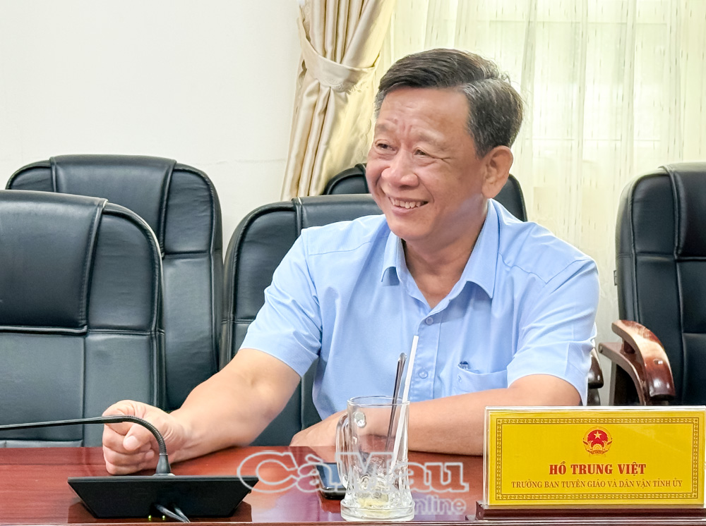 Cùng tham dự buổi làm việc có đồng chí Hồ Trung Việt, Uỷ viên Ban Thường vụ Tỉnh uỷ, Trưởng Ban Tuyên giáo và Dân vận Tỉnh uỷ; đồng chí Ngô Vũ Thăng, Phó Chủ tịch UBND tỉnh; cùng lãnh đạo Báo và Phát thanh, Truyền hình Cà Mau và Sở Văn hóa, Thể thao và Du lịch.