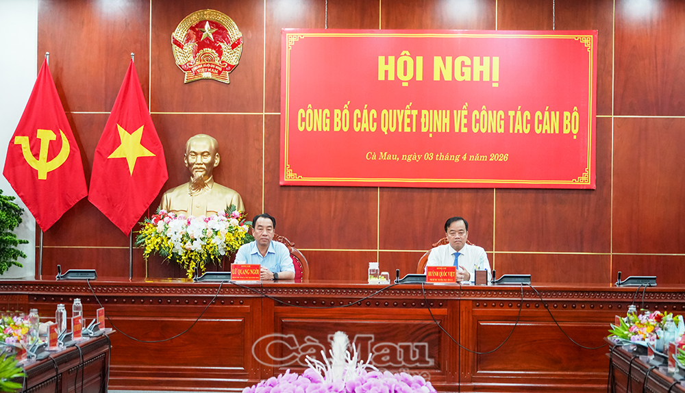 Báo Cà Mau Chiều 3/4, Tỉnh uỷ và UBND tỉnh Cà Mau tổ chức hội nghị công bố các quyết định về công tác cán bộ.