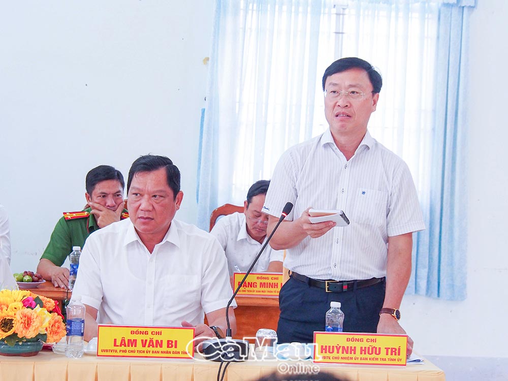 Tham dự buổi làm việc có đồng chí Hồ Thanh Thuỷ, Phó Bí thư Tỉnh uỷ; đồng chí Lâm Văn Bi, Uỷ viên Ban Thường vụ Tỉnh uỷ, Phó Chủ tịch UBND tỉnh; đồng chí Huỳnh Hữu Trí, Uỷ viên Ban Thường vụ Tỉnh uỷ, Chủ nhiệm Uỷ ban Kiểm tra Tỉnh uỷ; cùng đại diện lãnh đạo Vụ Địa bàn VIII, các sở, ngành tỉnh và xã Đất Mũi.