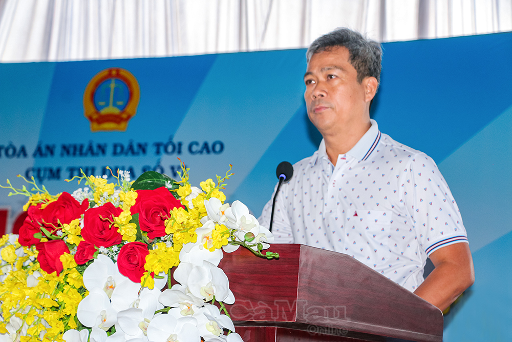 Ông Thái Rết, Chánh án Tòa án nhân dân tỉnh Cà Mau, phát biểu khai mạc hội thao.