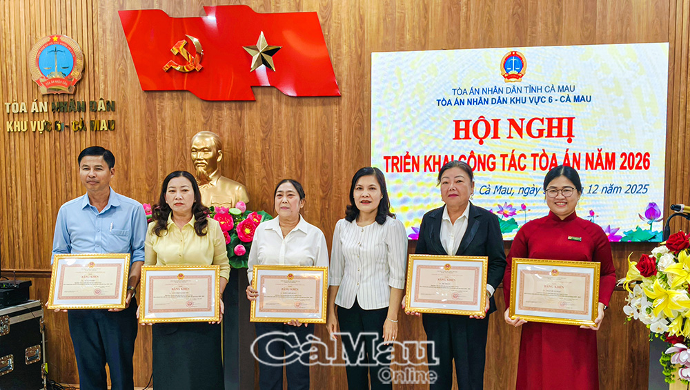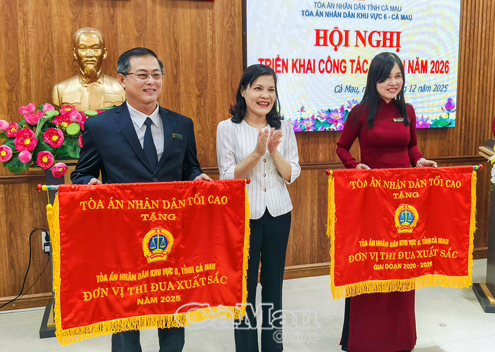 Ghi nhận những thành tích tiêu biểu, tại hội nghị, TAND khu vực 6 vinh dự đón nhận Cờ thi đua TAND năm 2025 và Cờ thi đua TAND giai đoạn 2020-2025; Bằng khen của Chủ tịch UBND tỉnh về thành tích tiêu biểu, xuất sắc trong các phong trào thi đua, góp phần tích cực vào sự phát triển kinh tế - xã hội của tỉnh Cà Mau giai đoạn 2020-2025./.