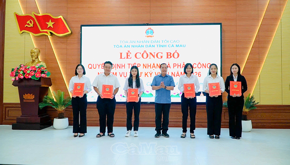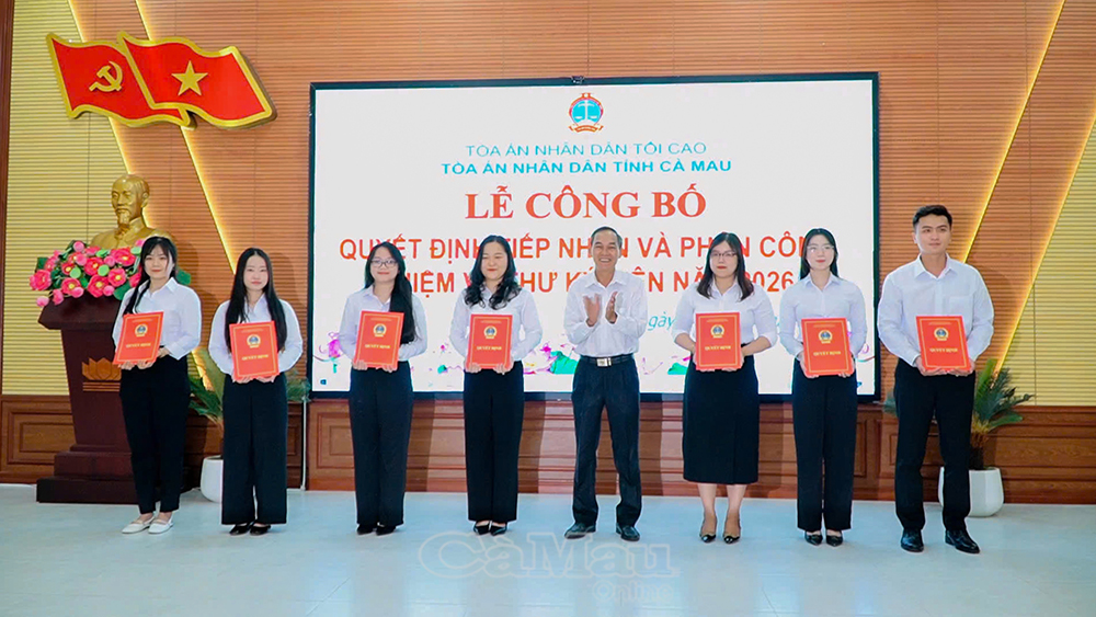 Theo Quyết định số 361/QĐ-TANDTC ngày 10/4/2026, có 14 ứng viên trúng tuyển kỳ thi tuyển dụng công chức TAND năm 2025 đã được phân bổ về TAND tỉnh Cà Mau. Toàn bộ số công chức này được tuyển dụng vào ngạch Thư ký viên, chính thức nhận nhiệm vụ từ ngày 15/4/2026.