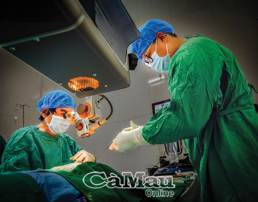 Một ca phẫu thuật mắt tại Bệnh viện Mắt - Da liễu, nơi Bác sĩ Ngô Thanh Tân đang công tác và giữ vai trò Phó Giám đốc. Ảnh minh hoạ: VĂN ÐUM