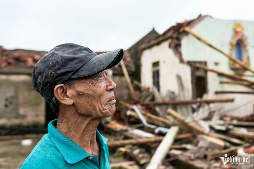 Ông Khuyênh mắt đỏ hoe nhìn ngôi nhà của gia đình mình đã bị trận giông lốc biến thành đống đổ nát.