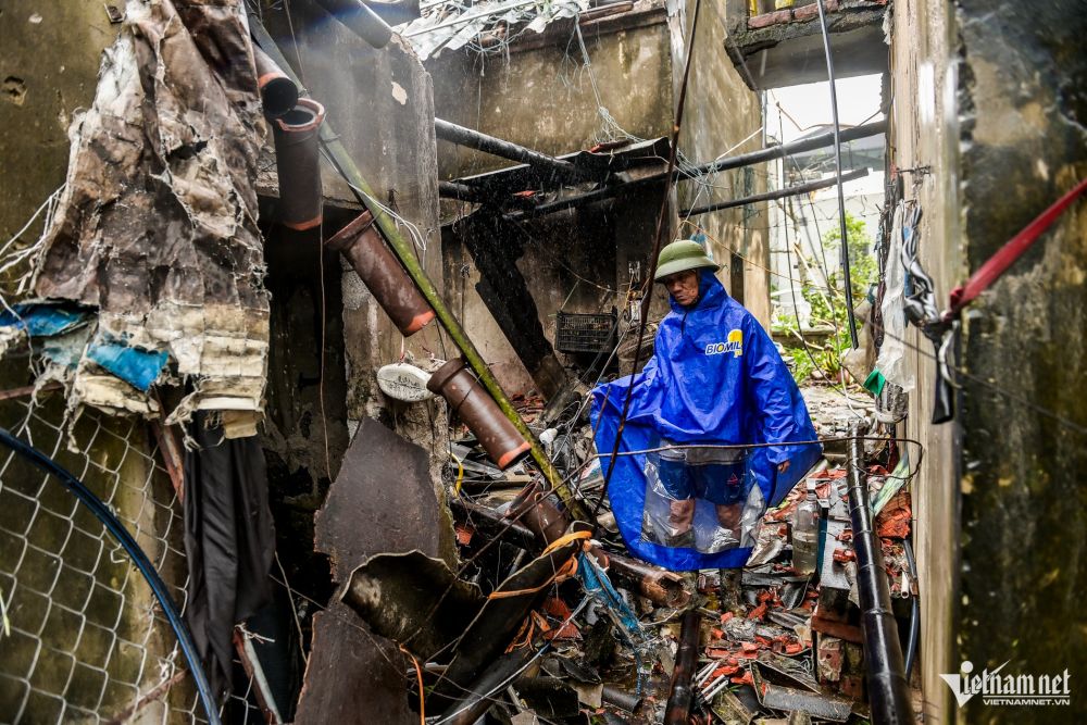 Sau những tiếng gió rít từng hồi trong đêm bão số 10, căn nhà của gia đình bà Lê Thị Hiển (63 tuổi, thôn Hảo Năm, xã Hoằng Phú) bị sập hoàn toàn.