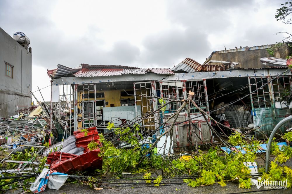 Những tấm tôn, biển quảng cáo, cành cây gãy đổ ngổn ngang khắp nơi.