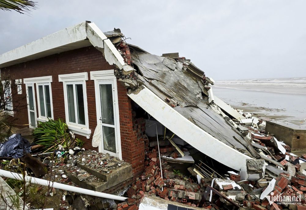 Tại tỉnh Hà Tĩnh, nhiều căn nhà bị tốc mái, đổ sập sau khi bão số 10 đổ bộ.