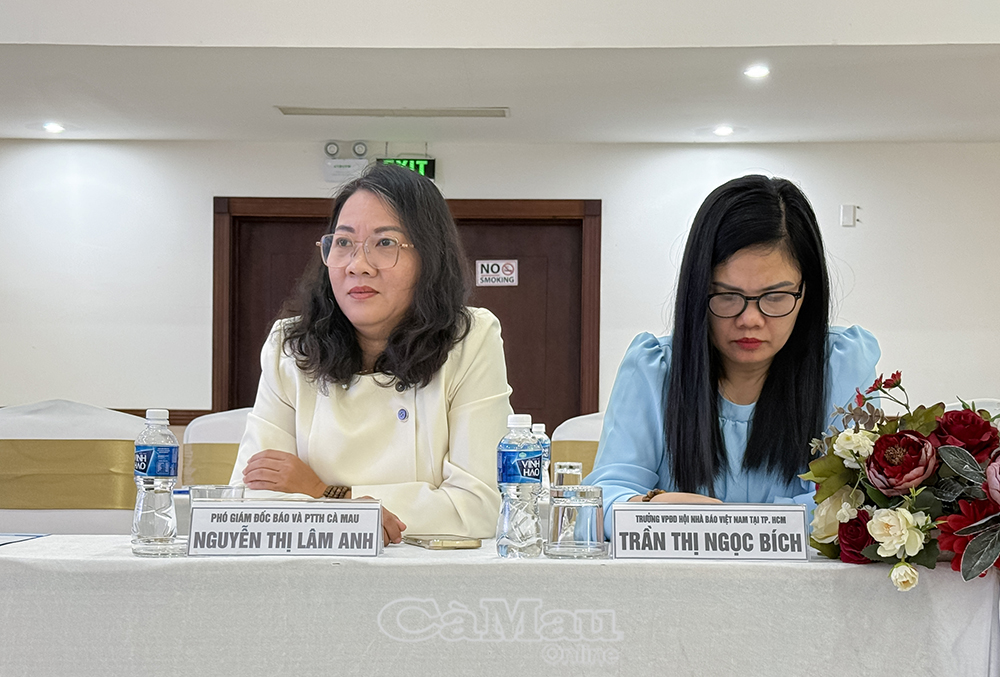Nhà báo Nguyễn Thị Lâm Anh, Phó Giám đốc - Trưởng đoàn Báo và phát thanh, truyền hình Cà Mau, tham dự hội thảo.