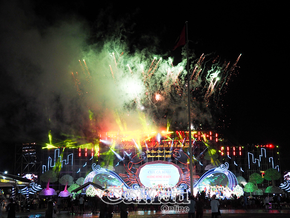 Màn bắn pháo hoa khai mạc Ngày hội Cua Cà Mau lần thứ II năm 2025.